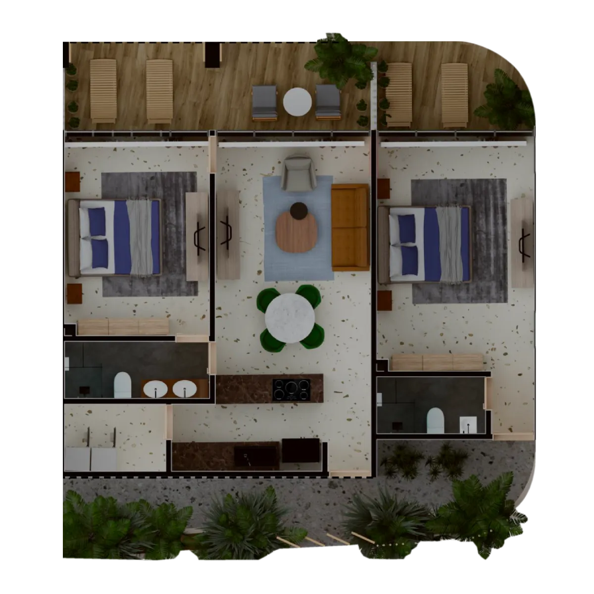Aktum 369 es un desarrollo boutique de 24 departamentos dentro de Mukta Residencial, en el corazón de la Riviera Maya. Residencias totalmente amuebladas, listas para uso o renta, bajo un modelo de propiedad fraccionada con respaldo legal y operación profesional incluida. Una inversión respaldada por plusvalía y generación de rentas.